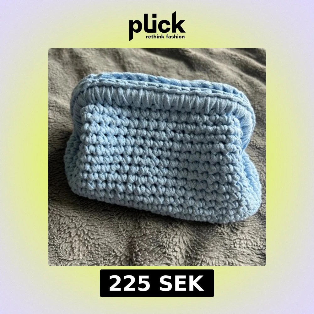 Virkat clutch/nessesär Virkad av mig Helt ny Virkad i ett Bandgarn i bomull. Mått öppning ca 19x17 cm ca 13 cm hög