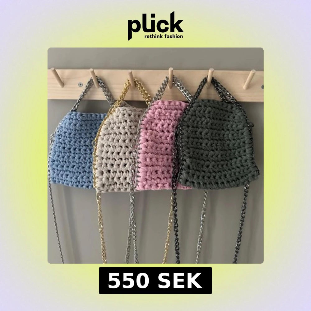 Gör virkade väskor på beställning🤍 just nu går de att få i Grön, Rosa, Beige, Svart, grå/brun. Mellan kedjor kan man välja på guld, silver, mörk silver. Görs i en storlek och kostar 450kr (priset är satt efter material och arbete)