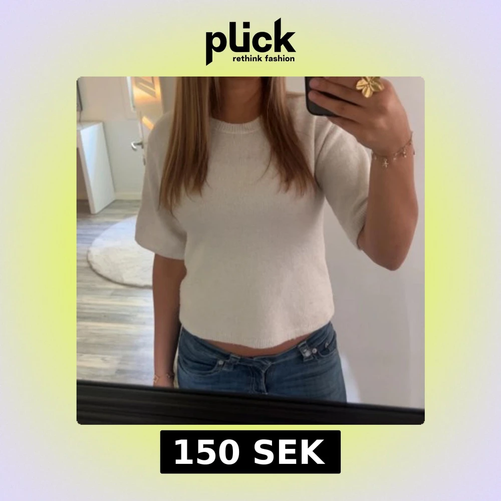 Säljer en enkel och stilren vit croppad stickad topp med korta ärmar och rund hals. Perfekt till jeans eller kjol för en clean look. Mjuk och skön mot huden.