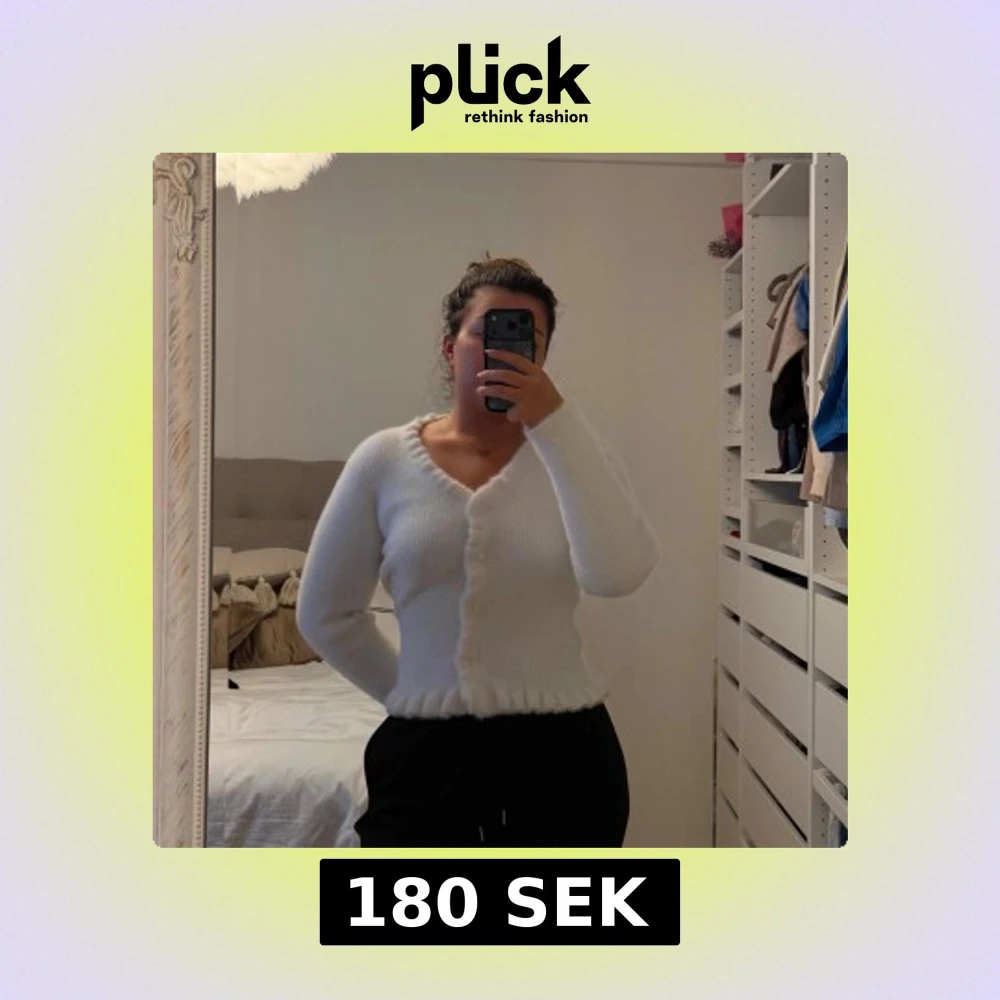 Supermjuk och fluffig vit kofta med v-ringning och knappar framtill. Koftan har lång ärm och ribbad kant nedtill för en snygg passform. Perfekt för lager-på-lager och ger en cozy vibe till din outfit.