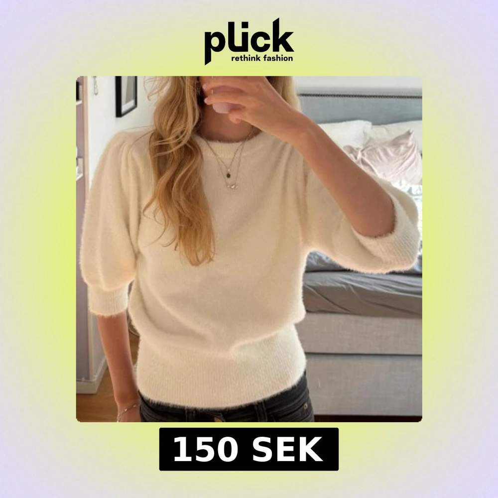 Supermjuk och fluffig vit stickad tröja med rund hals och trekvartsärmar, super skön!