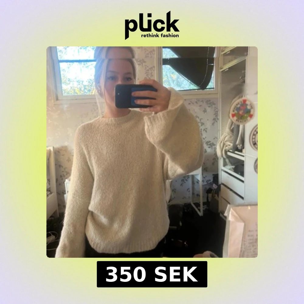 Supermysig fluffig stickad tröja i offwhite från Icons, storlek S. Tröjan har rund hals, långa ärmar och en loose passform. Materialet är 71% alpacka, 18% virgin wool och 11% nylon, vilket gör den extra mjuk och varm. Perfekt för kyliga dagar! Nypris 2000