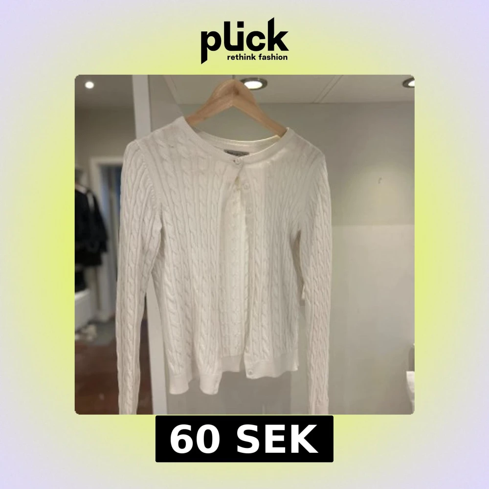 Använd få gånger, men som ny i skicket. Kabelstickad vit kofta från Basic You i ekologisk bomull. Klassisk modell med rund hals, knäppning framtill och långa ärmar. Perfekt för lager-på-lager och enkel att matcha med allt. Snygg ribbad kant vid ärmslut och nederkant. 🥰🥰
