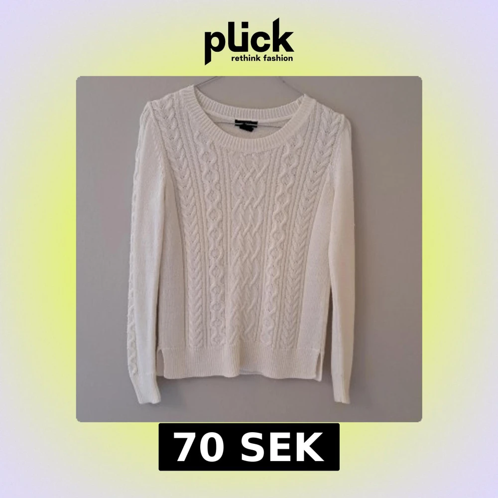 Vit kabelstickad tröja från Lindex med rund halsringning och snygga flätmönster framtill. Tröjan har ribbade muddar vid ärmslut och nederkant samt långärmad passform. Perfekt för lager-på-lager under kyliga dagar.