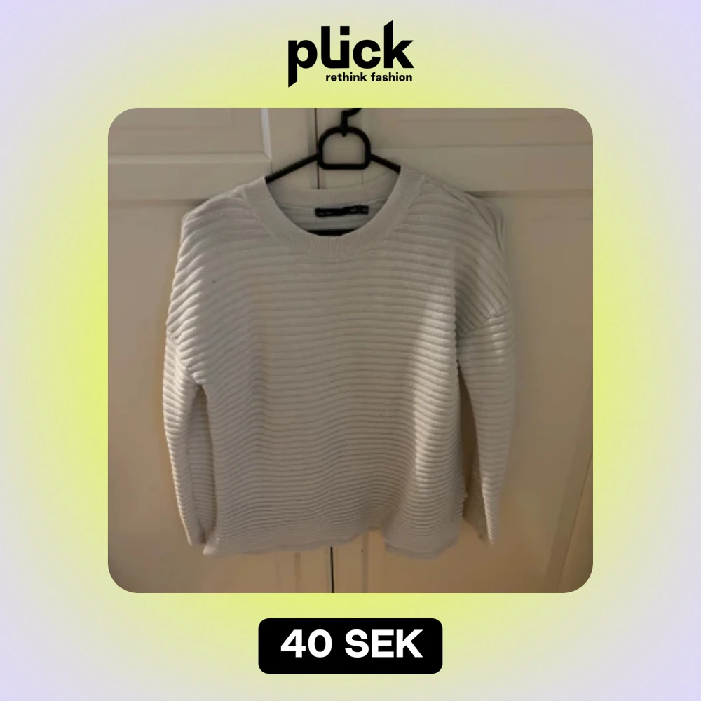 En vit stickad tröja med mönster som är i väldigt fint skick. Lite mönstrad i tyget. Storlek XS.
