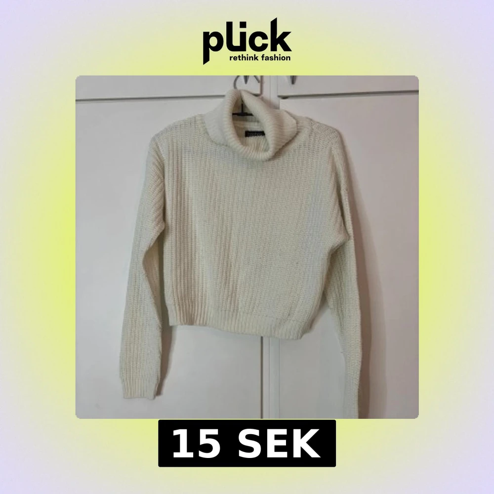 Supermysig vit polotröja från Boohoo i grovstickad modell. Tröjan har lång ärm, ribbade muddar och en rejäl polokrage som ger extra cozy vibes. Den är nopprig på vissa ställen(se bild 3) därav priset. Storlek S