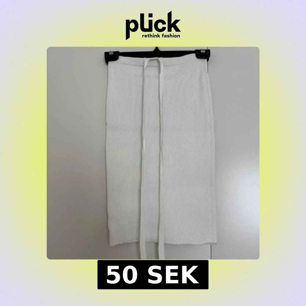 Säljer en vit ribbad långkjol från Missguided i stickat material. Kjolen har en snygg knyt-detalj framtill och är figurnära med en clean look. Perfekt för dig som gillar minimalistisk stil och vill ha något bekvämt men ändå trendigt.