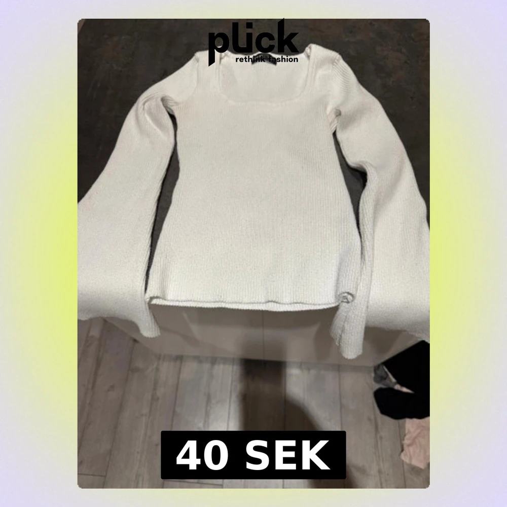 Säljer en vit ribbad långärmad topp från SHEIN med fyrkantig ringning. Toppen är stickad och har en slim passform som sitter snyggt på kroppen. Perfekt att styla med jeans eller kjol för en clean look.💞💞