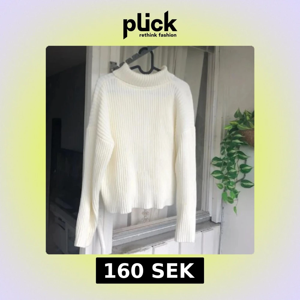 Supermysig vit polotröja med ribbad struktur och lång ärm. Tröjan är stickad och har en hög krage som ger en chill och stilren vibe. Mycket stretch i, så den är S men är mer som M tycker jag. Men den passar S-L