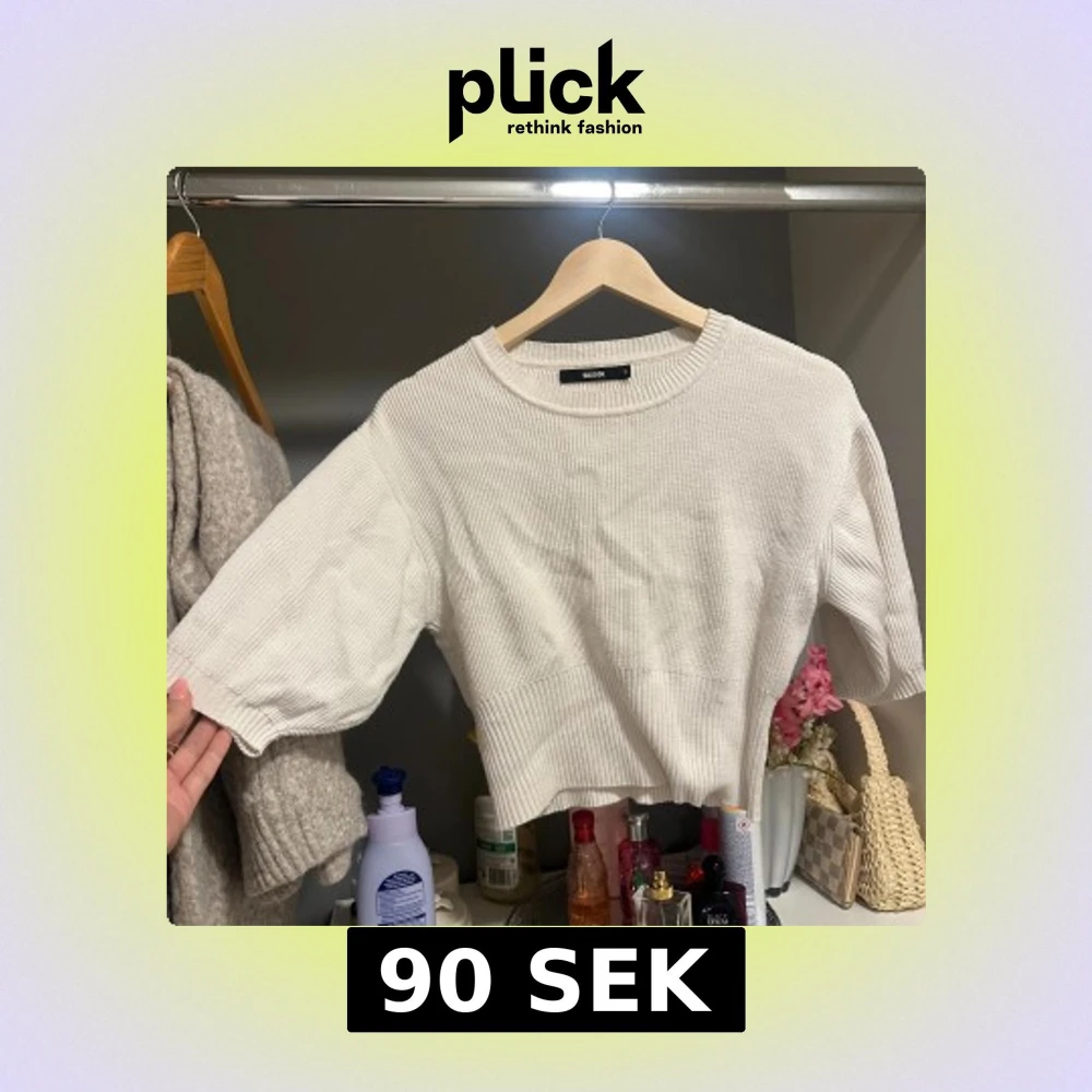 Säljer en vit ribbad topp från Bik Bok i storlek S. Toppen har rund halsringning, korta ärmar och är croppad i modellen. Materialet är mjukt och stickat, perfekt för en chill och stilren look. Enkel att matcha med jeans eller kjol för en fräsch vibe.