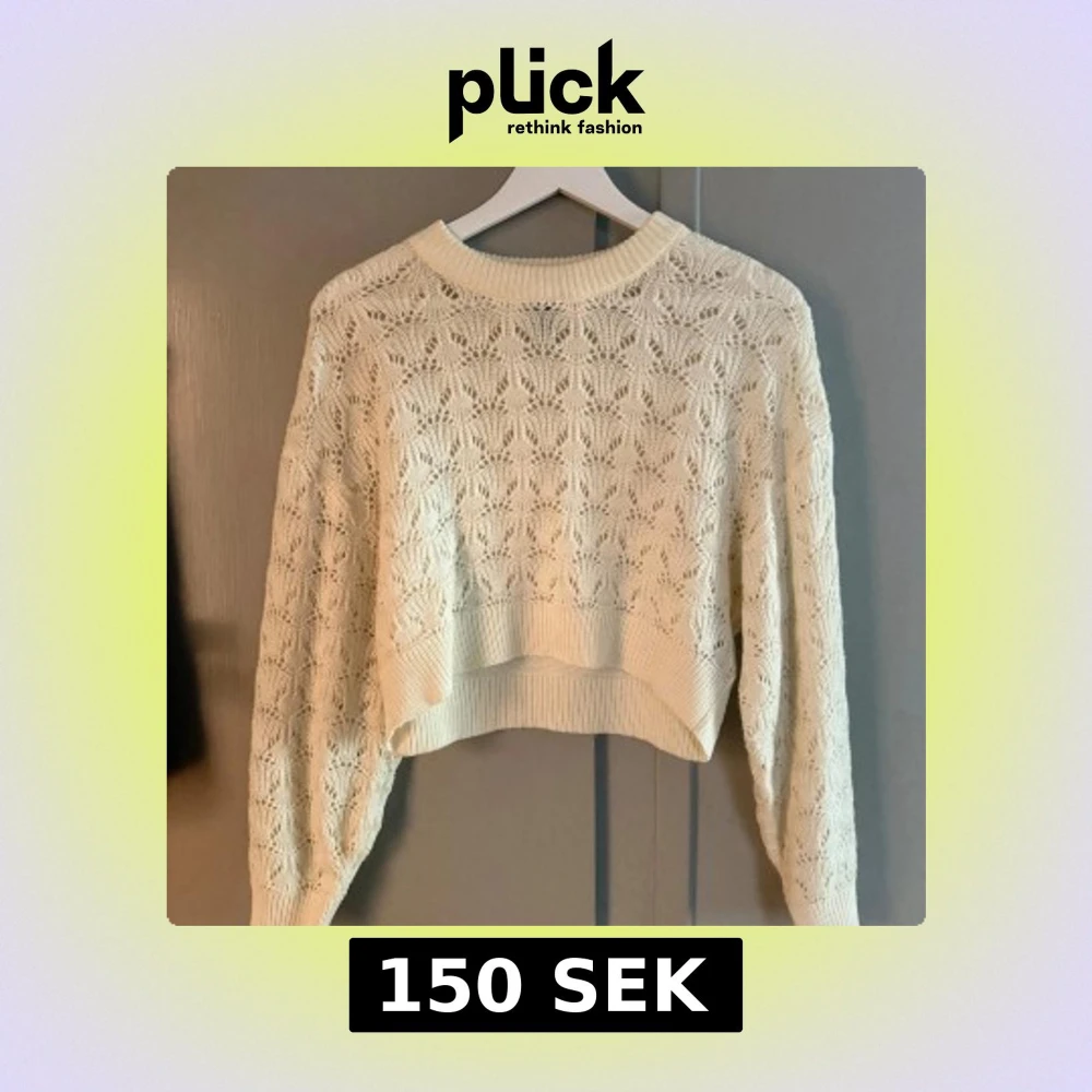 Vit stickad tröja som är kortare i passformen från H&M💕