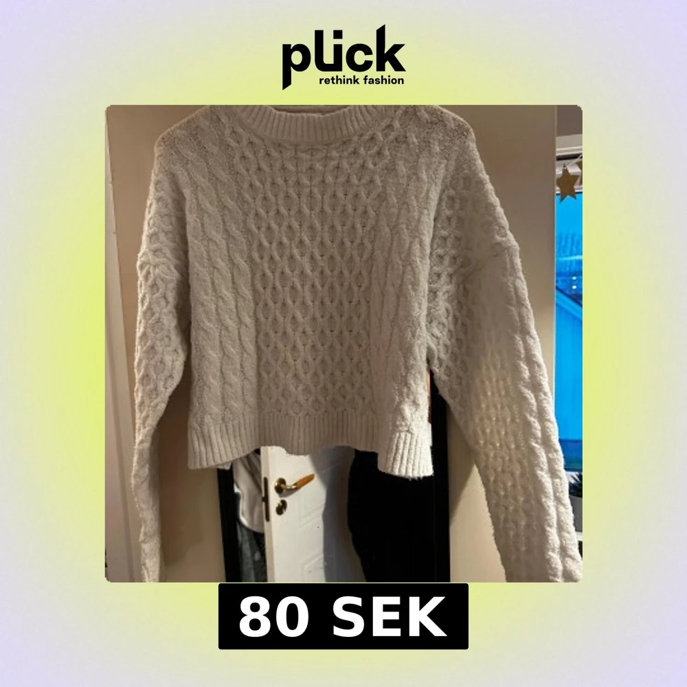 Säljer en vit stickad tröja från INSIDE i croppad modell. Tröjan har ett fint kabelstickat mönster, rund halsringning och långa ärmar. Perfekt för lager-på-lager och passar till många olika outfits.