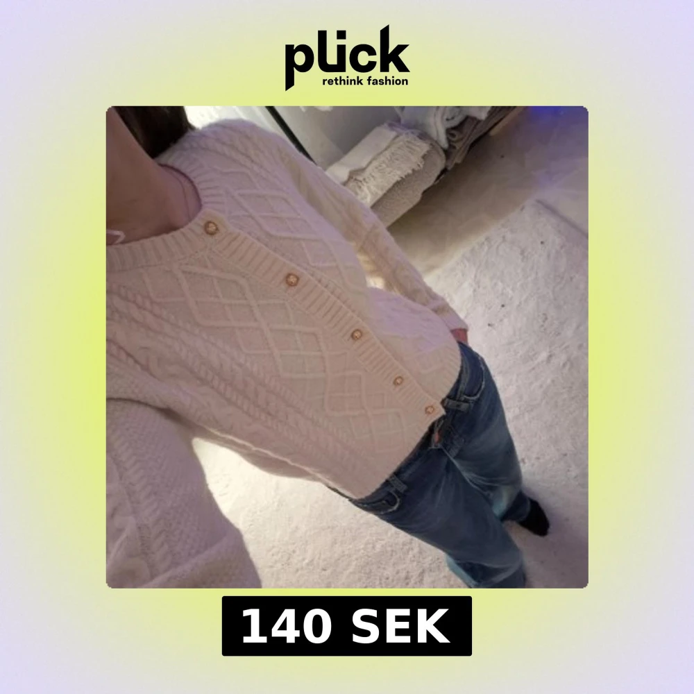 Säljer en mysig vit stickad kofta från H&M med ett klassiskt flätmönster. Koftan har långa ärmar och knäpps med dekorativa knappar framtill. Perfekt för kyliga dagar!🤍 skriv vid intresse!💕
