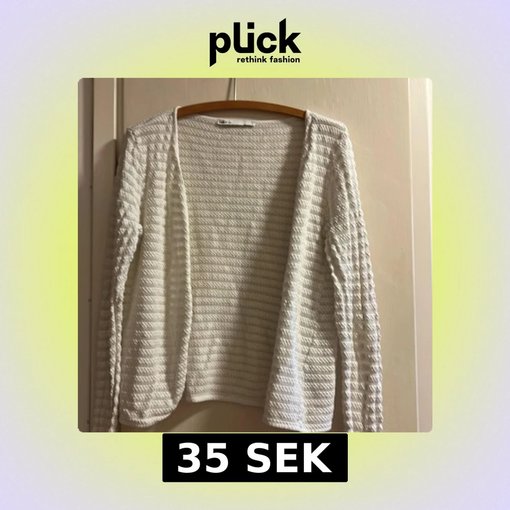 Säljer en vit stickad kofta från ONLY LIFE i storlek L. Koftan har ett snyggt strukturerat mönster med lång ärm och öppen front. Perfekt att slänga över en topp för en chill och fräsch look.
