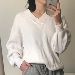 En fin vit stickad v-ringad tröja i bra skick! Strl M. Skriv vid intresse eller om du har några frågor💕