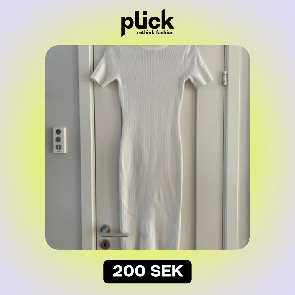 vit stickad ribbad klänning i strl 38 fr Missguide