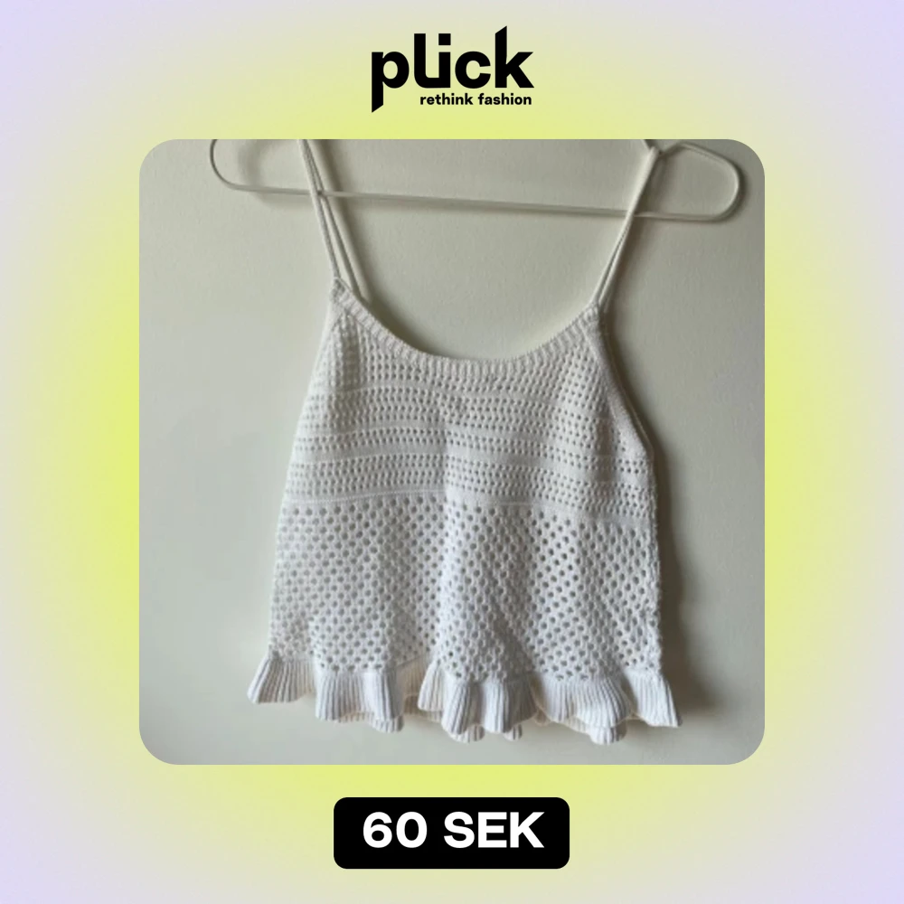 Säljer en superfin vit stickad topp från MNG. Den är ärmlös med smala axelband och har en söt volangdetalj längst ner. Perfekt för sommardagar eller en avslappnad fest. Toppen är i storlek S och i nyskick.