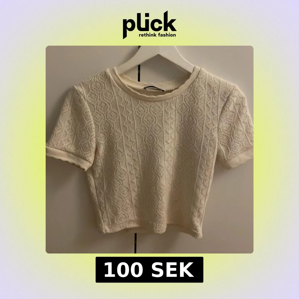 Säljer en söt vit topp från Zara med korta ärmar och ett fint mönster. Toppen är croppad och har en rund hals. 💞💞💞