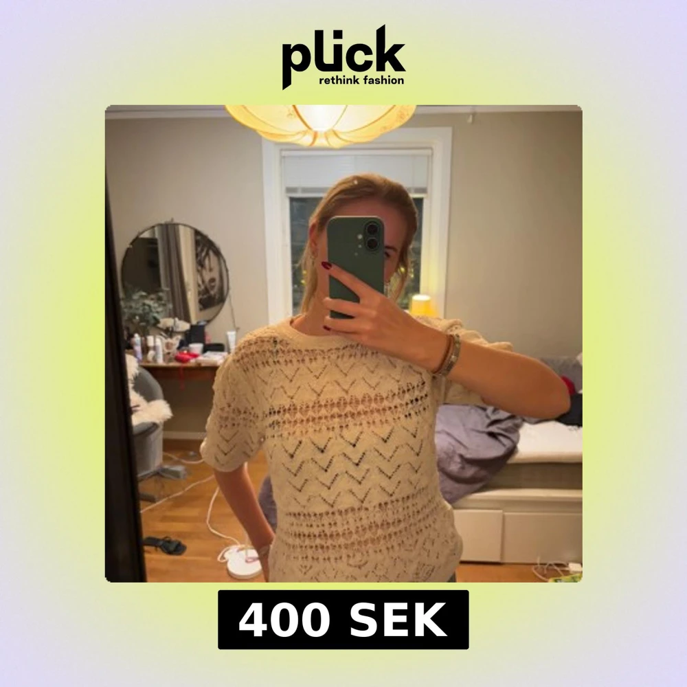 Säljer en vit stickad topp från Zara med ett snyggt hålmönster. Toppen har korta ärmar och en rund halsringning. Perfekt för en stilren look. 🧶✨