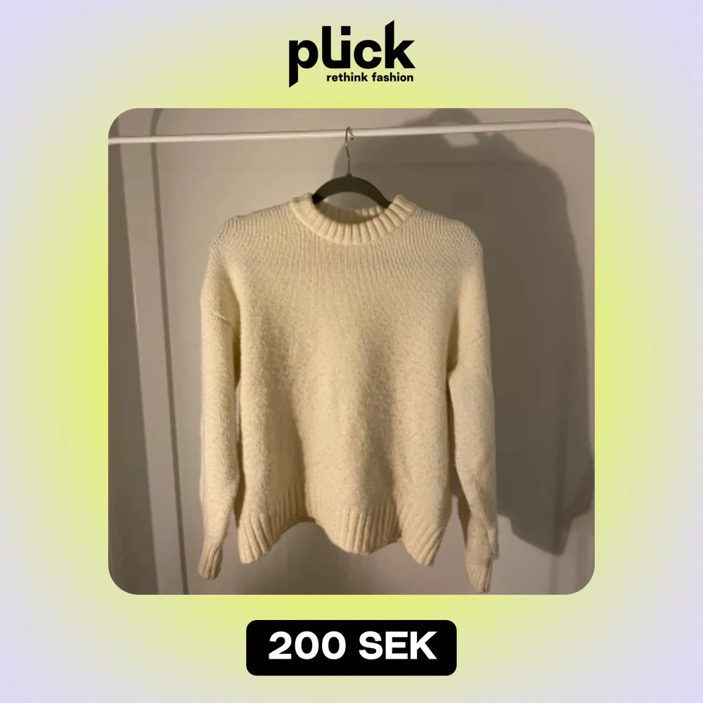 Vit stickad tröja från NAKD. I bra skick då den inte har använts så mycket. Säljer just för att den inte kommer till användning. Storlek XS men enligt mig känns den större.
