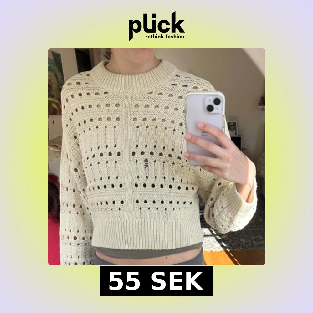 Fin vit stickad tröja från Gina tricot Den har ett hål där fram som man inte riktigt märker av. Croppad modell
