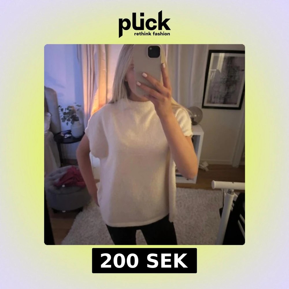 Säljer en mysig vit stickad tröja med korta ärmar. Väldigt populär!!