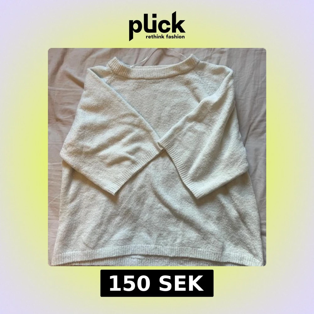 Mysig vit stickad tröja från 157 med rund halsringning och trekvartsärm. Tröjan har ribbade muddar vid hals, ärmslut och nederkant. Perfekt för lager-på-lager och chill dagar.