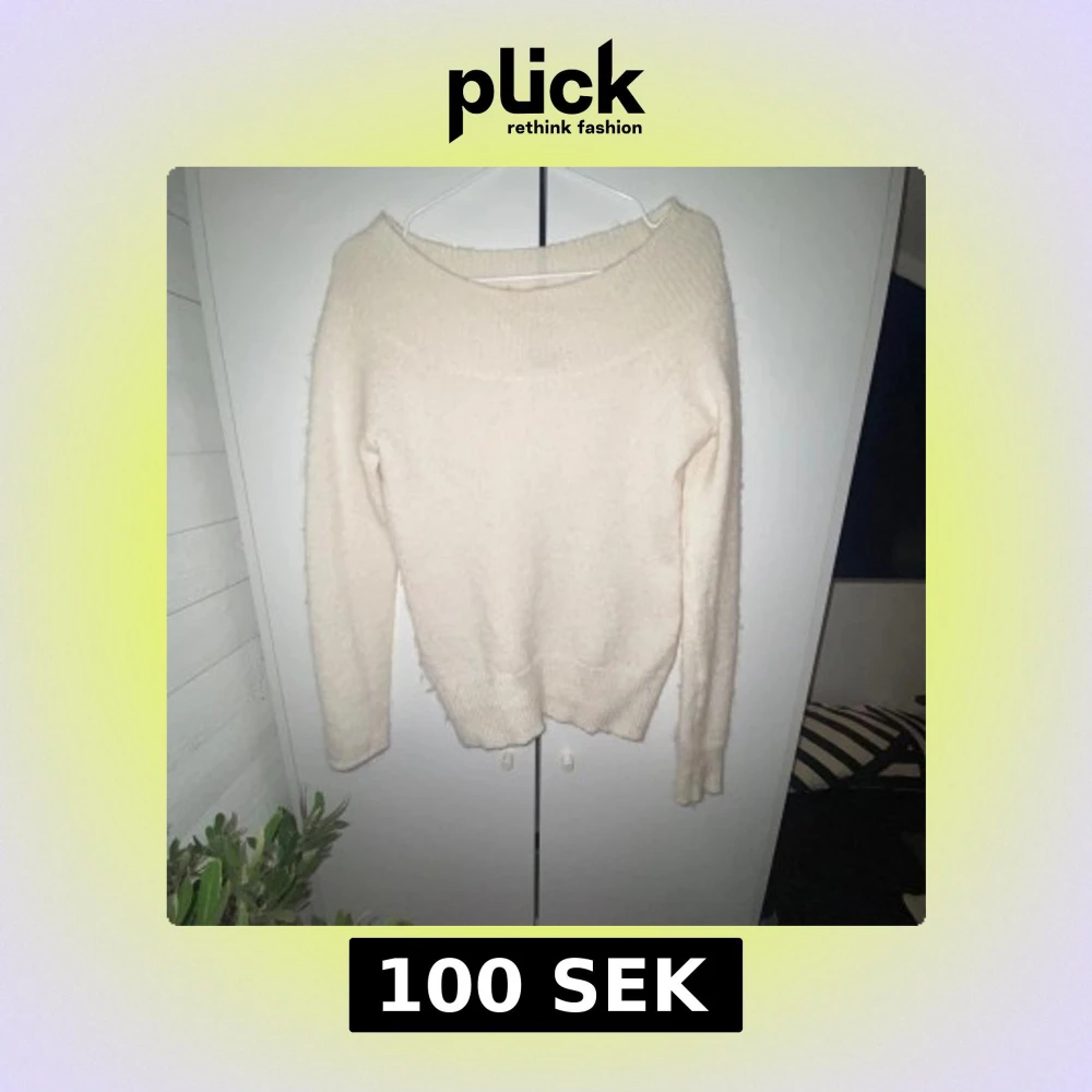 Mysig vit stickad tröja från Crocker i storlek S. Tröjan har en enkel design med långa ärmar och ribbade kanter vid hals, ärmslut och nederkant. Perfekt för kyliga dagar.
