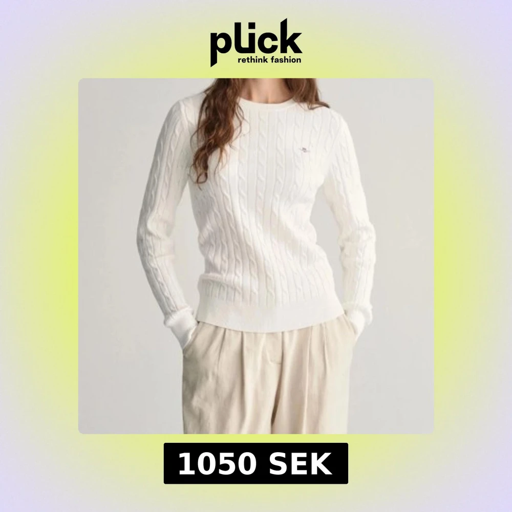 Säljer en stilren vit/cremefärgad stickad tröja från Gant med kabelstickat mönster. Tidlös stil som passar både till vardag med även finare tillfällen. Den är i nyskick och säljs för 999kr. Nytt pris är 1600kr. Funkar perket som en julklapp.