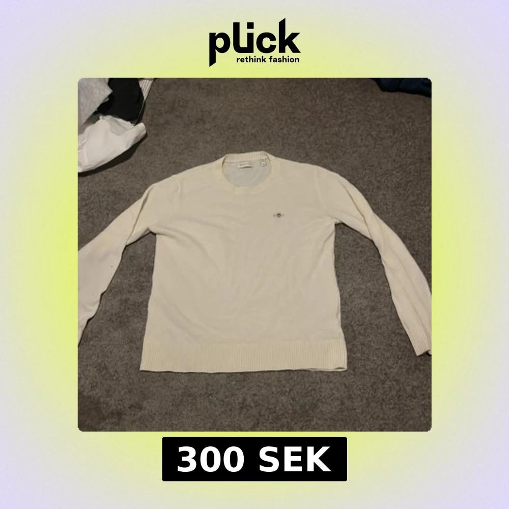 Klassisk vit stickad tröja från GANT med rund hals och diskret broderad logga på bröstet. Tröjan har ribbade muddar vid hals, ärmslut och nederkant. Perfekt för en clean och stilren look.