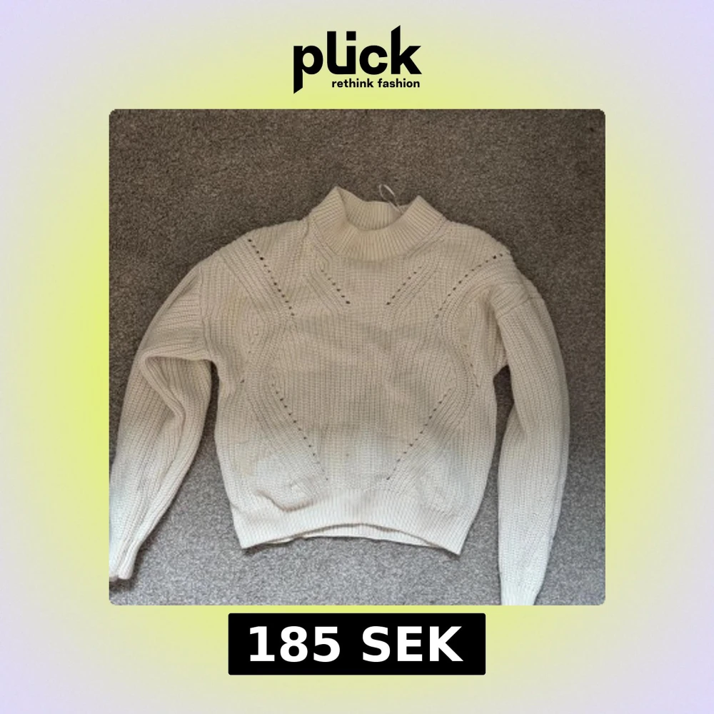 Säljer en vit stickad tröja från H&M med hög krage och snygga stickade detaljer framtill. Tröjan har långärmad passform och är perfekt för kyligare dagar. Enkel att matcha med jeans eller kjol för en clean look.