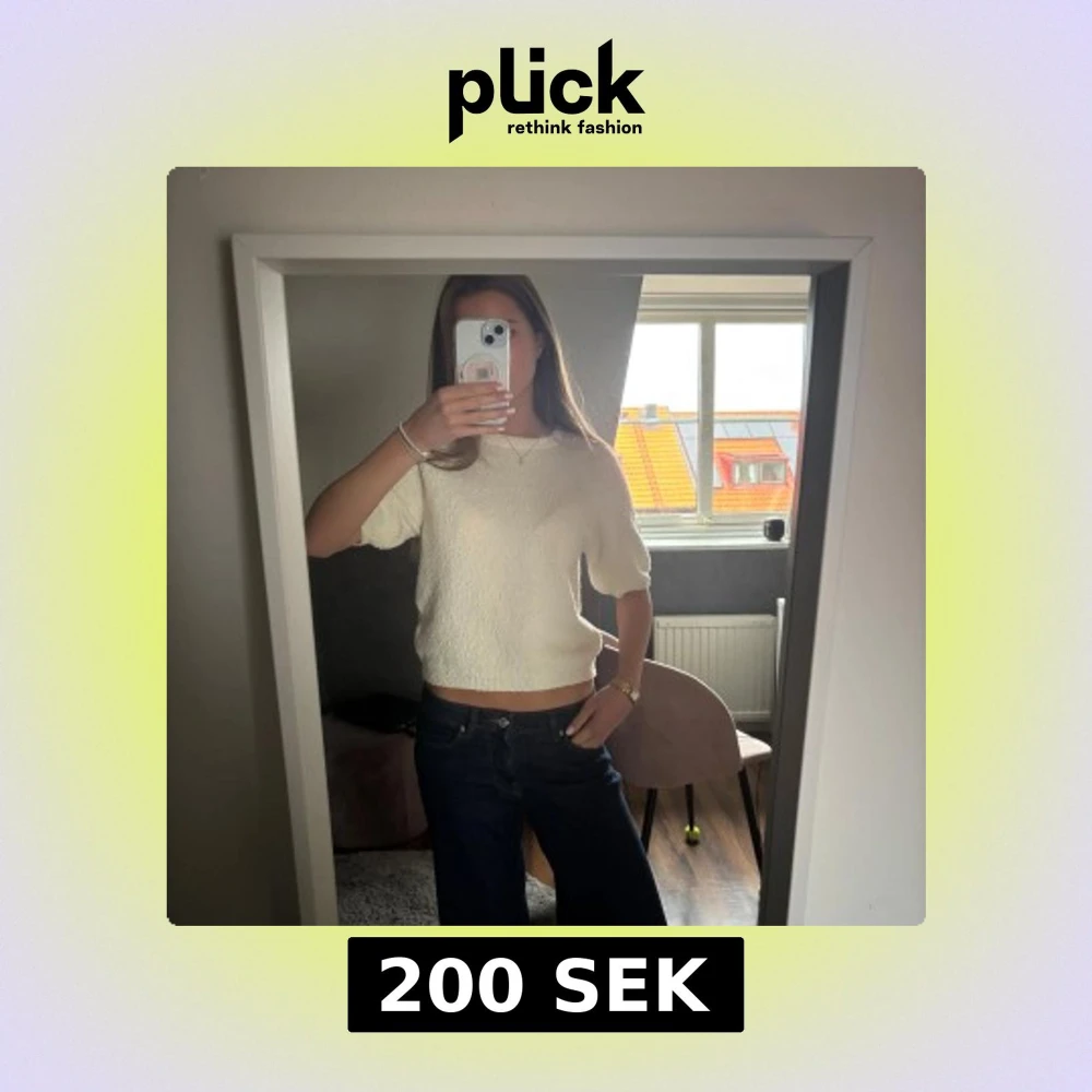 Superfin natur vit stickad tröja från Lindex i storlek S. Tröjan har korta puffärmar, rund halsringning och en croppad passform. Materialet är mjukt och lite strukturerat. Knappt använd.