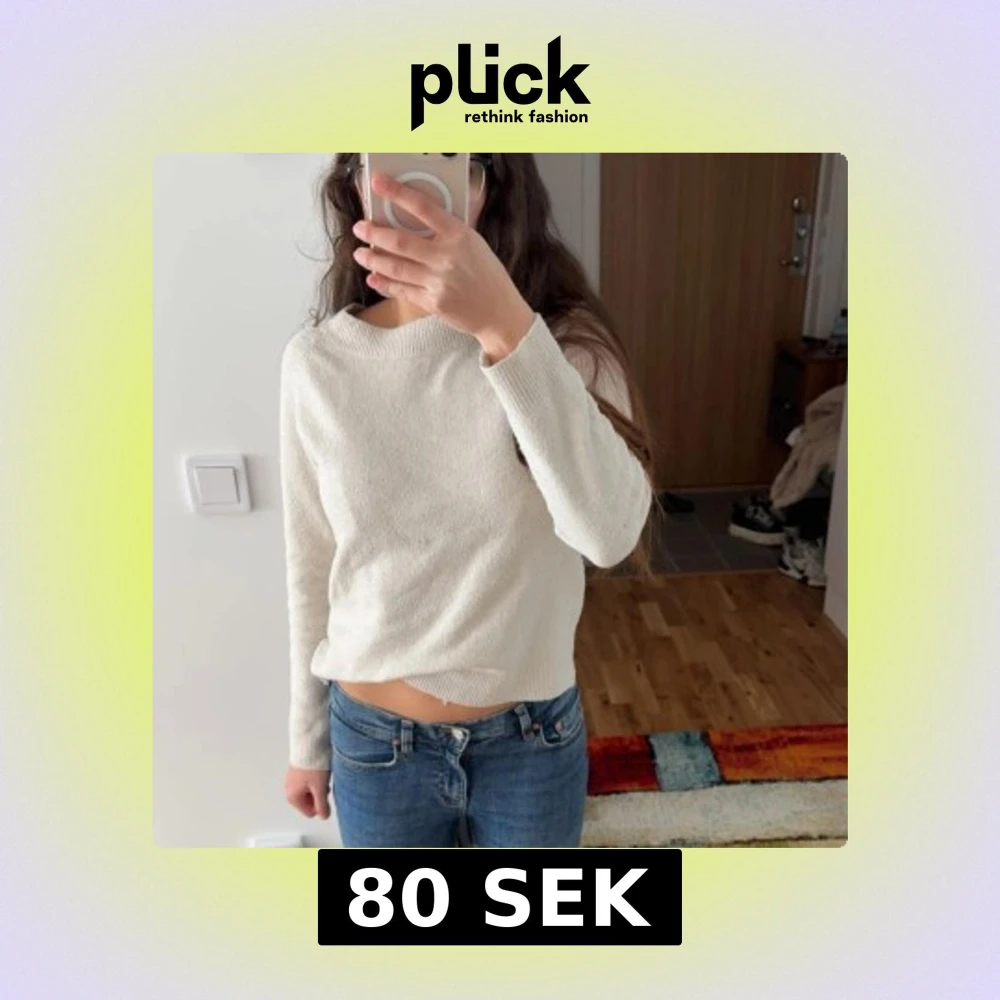Enkel och stilren vit stickad tröja från ONLY med rund halsringning och långa ärmar. Tröjan har ribbade muddar vid ärmslut och nederkant, vilket ger en snygg och klassisk look. Den har en liten svart/grå fläck i mitten av tröjan annars tröjan är perfekt att matcha med jeans eller kjol för en clean vibe.