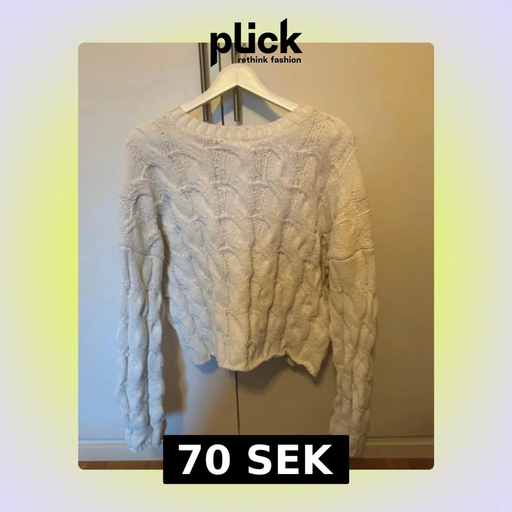 Säljer en vit stickad tröja från Samsa Collection i storlek M. Tröjan har ett chunky flätmönster och bred ribbad kant vid halsen. Den är långärmad och har en loose passform som ger en chill vibe. Perfekt för kalla dagar när du vill vara både snygg och bekväm.
