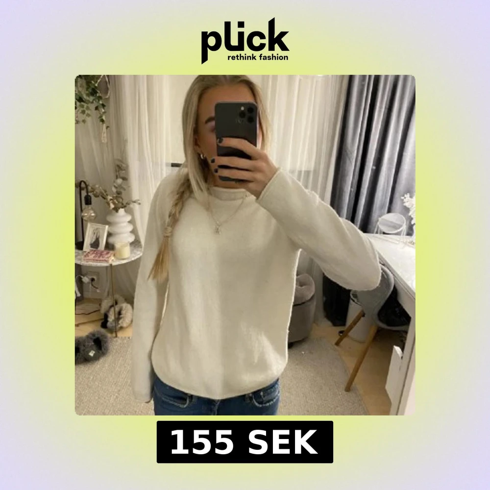 Mysig vit stickad tröja med rund hals och långa ärmar. Enkel och stilren design som passar perfekt till jeans. Tröjan har en lite loose passform och är superbekväm för kyligare dagar.
