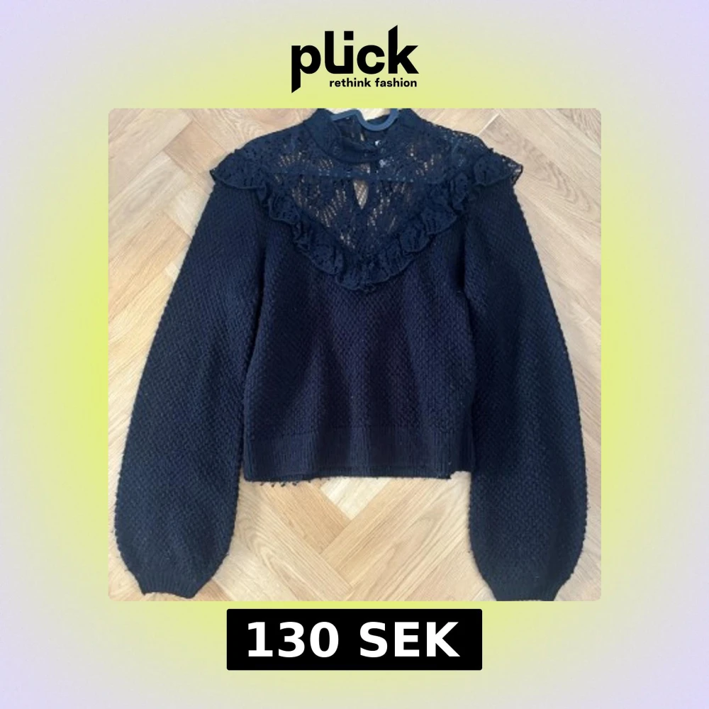 Svart stickad tröja med långa ärmar som är lite vidare. Från h&m, divided. Den är lite nopprig vilket syns på bilderna men inget man tänker mycket på i verkligheten!