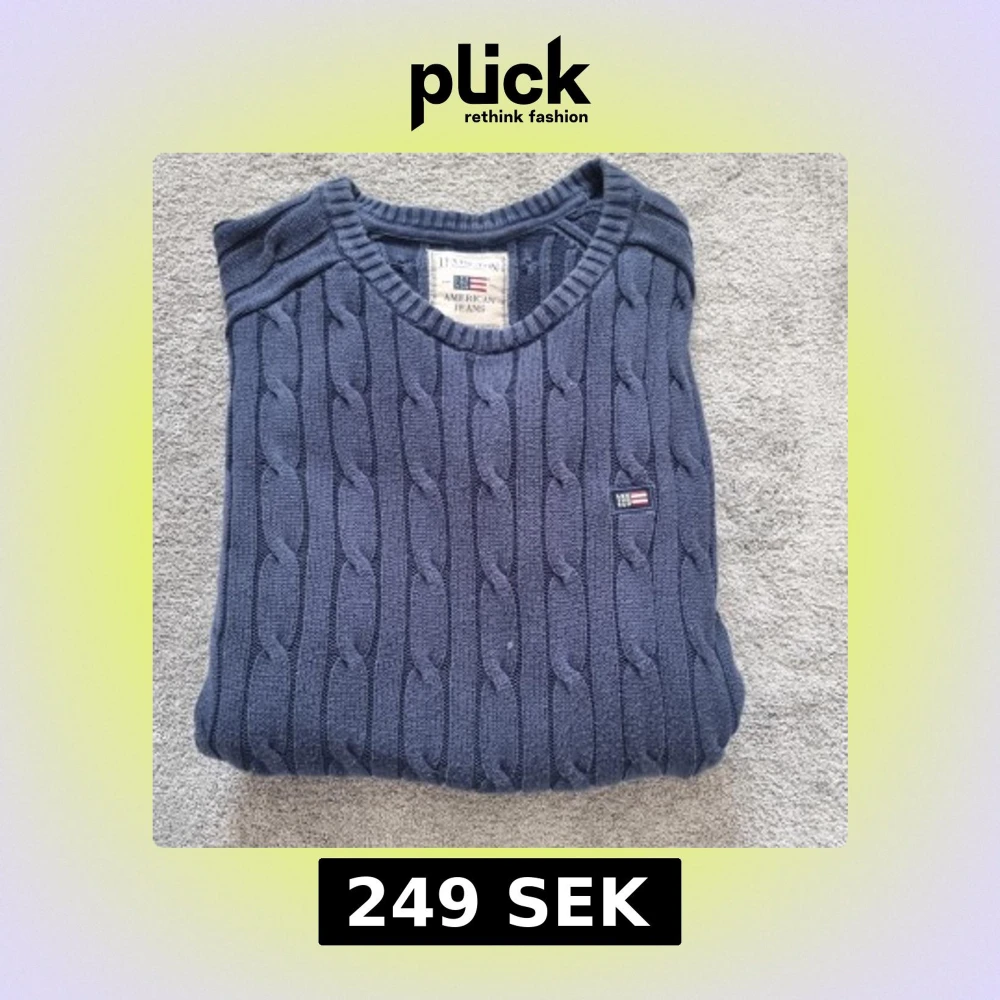 Kabelstickad mörkblå tröja från Lexington i storlek Large. Tröjan har rund halsringning, ribbade muddar och ett litet Lexington-märke på bröstet. Perfekt för dig som gillar klassisk och stilren look med amerikansk preppy-vibe.