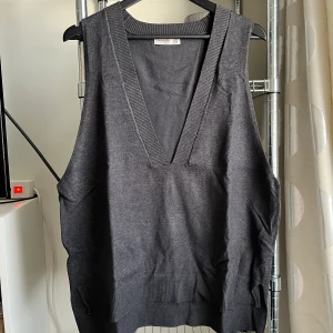 Stickad väst med stor v-ringning. Relativt lång i modellen. Snyggt över en vit skjorta! 👔✨stor i storleken!!!! Stradivarius köpt på ASOS.