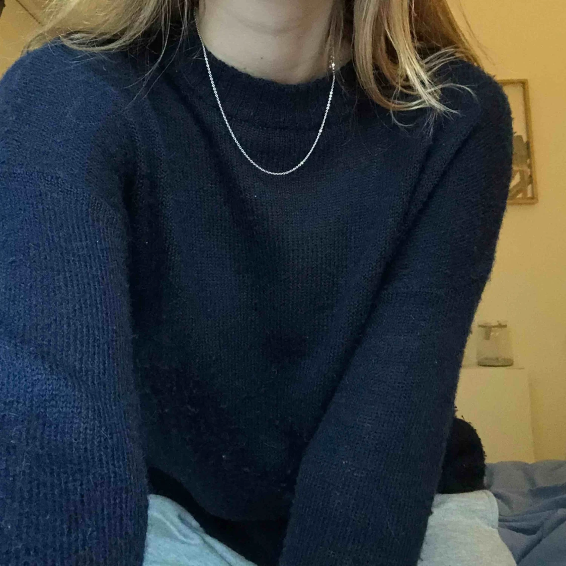 As fin marinblå stickad tröja från weekday! Lite längre än en vanlig tröja o går ännu lite längre där bak, över rumpan på mig (se tredje bilden). Frakt tillkommer!