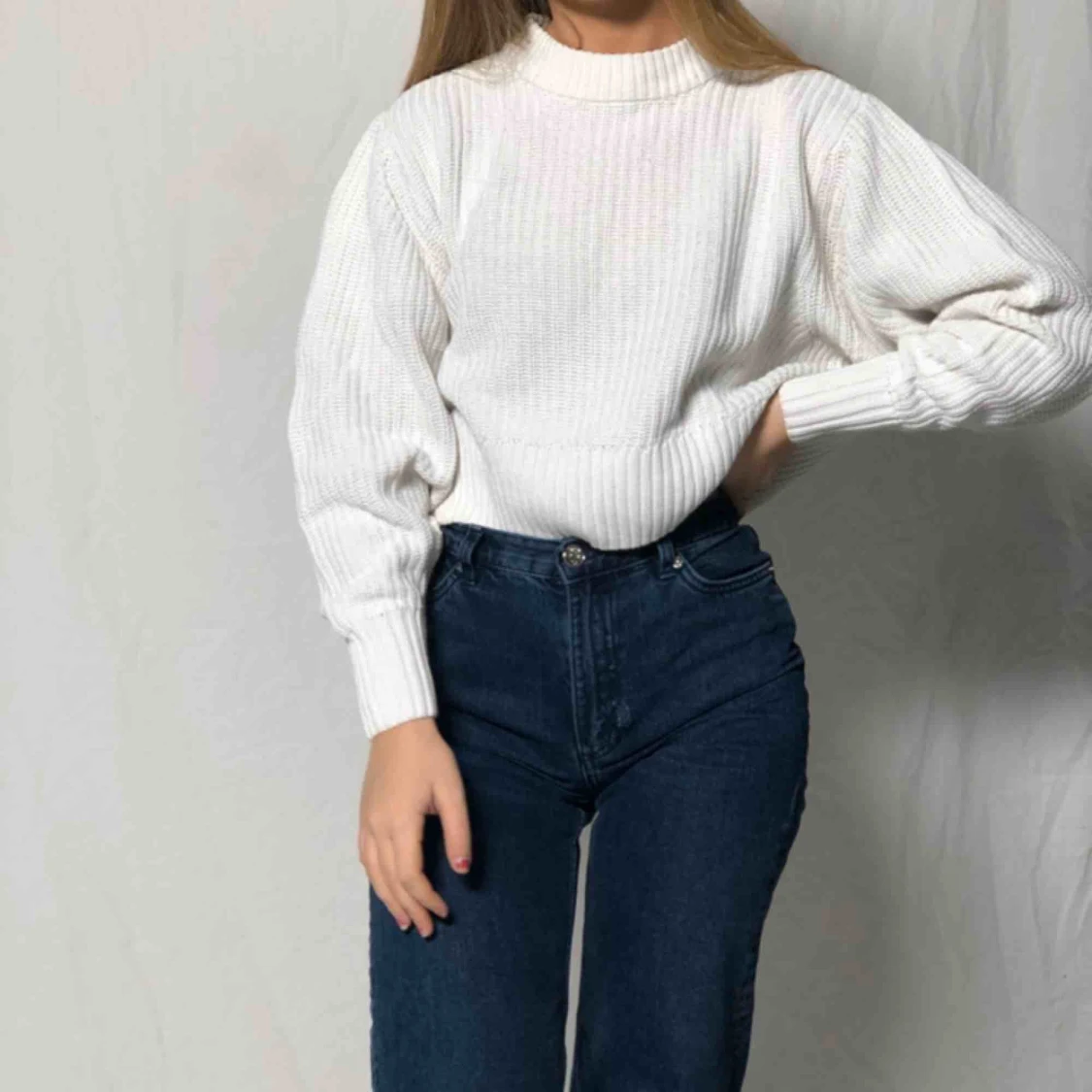 Vit, stickad tröja från Monki. Möts upp i Malmö annars betalar köparen frakten.