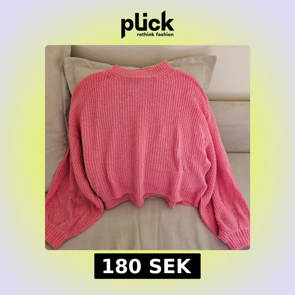Säljer en mysig rosa( pink) stickad tröja. Tröjan har en loose passform med långa ärmar och ribbade muddar vid ärmslut och nederkant. Perfekt för kyliga dagar!