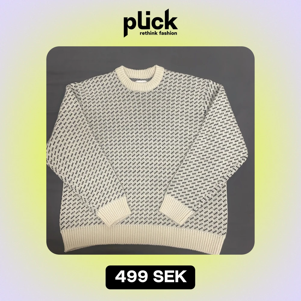 Säljer en snygg vit och svart stickad tröja från Vailent i storlek XL. Tröjan har ett klassiskt mönster och är perfekt för kyliga dagar. Den har långa ärmar och ribbade muddar vid ärmslut och nederkant. Passar både till vardags och lite finare tillfällen.