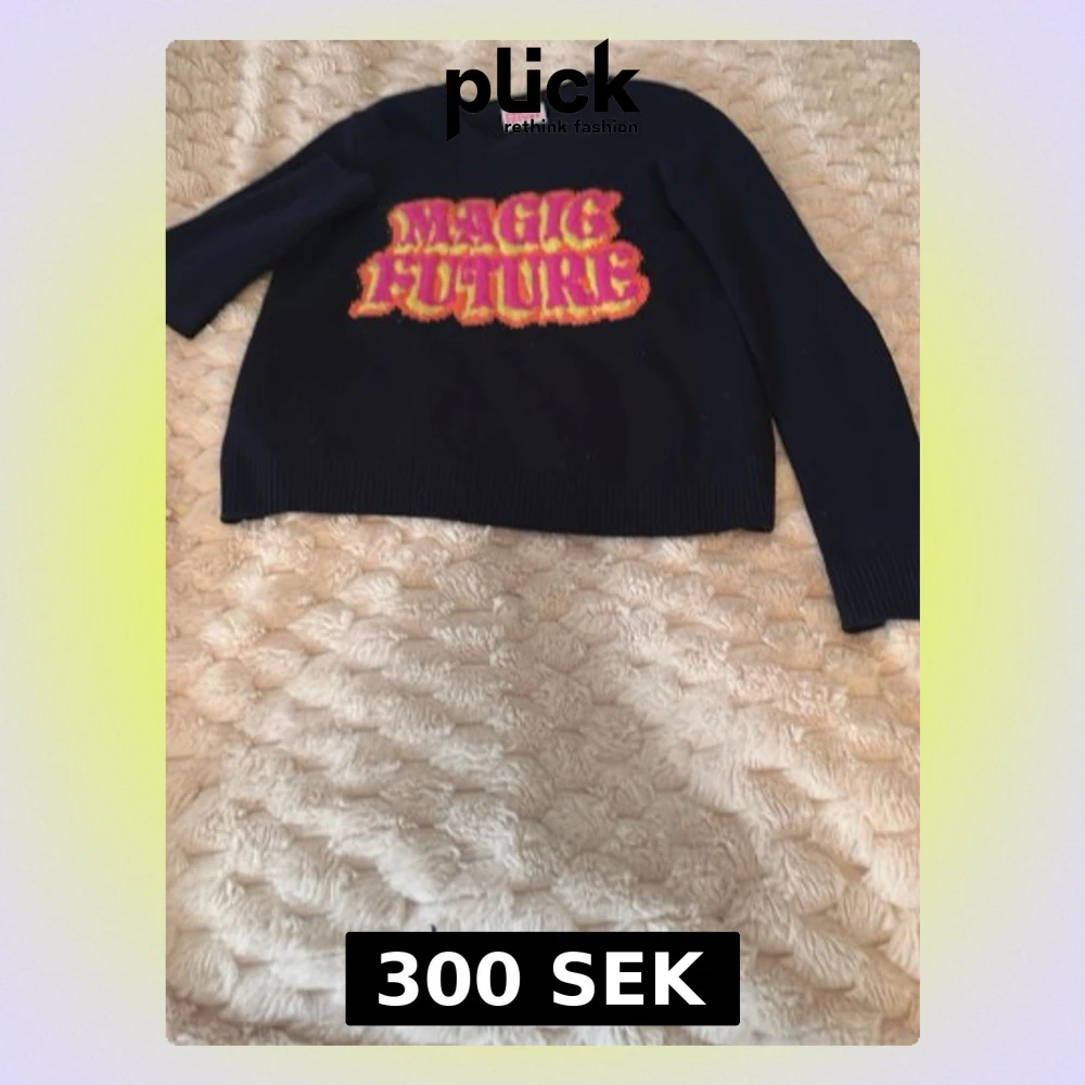Cool mörkblå Kashmir tröja från From Future med färgglad text 'MAGIC FUTURE' i rosa, gul och orange på bröstet. Tröjan har rund halsringning och långa ärmar. Perfekt för dig som vill sticka ut med en unik statement piece.