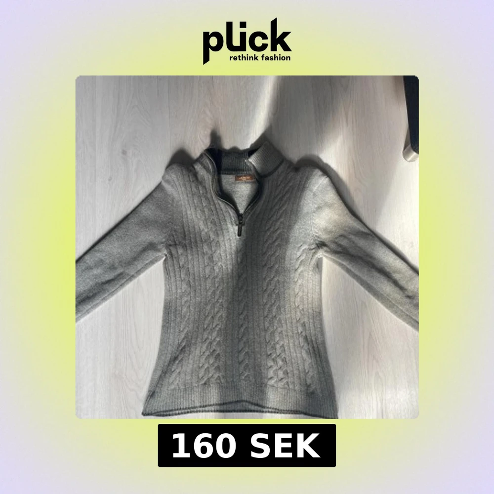 Säljer en stilren grå stickad tröja från Jerem. Tröjan har en dragkedja vid halsen och ett snyggt flätmönster på framsidan. Den är tillverkad i en mjuk blandning av lammull och kashmir, vilket gör den både varm och bekväm. Perfekt för kyliga dagar! (Ps: Storlek S men sitter som XS)