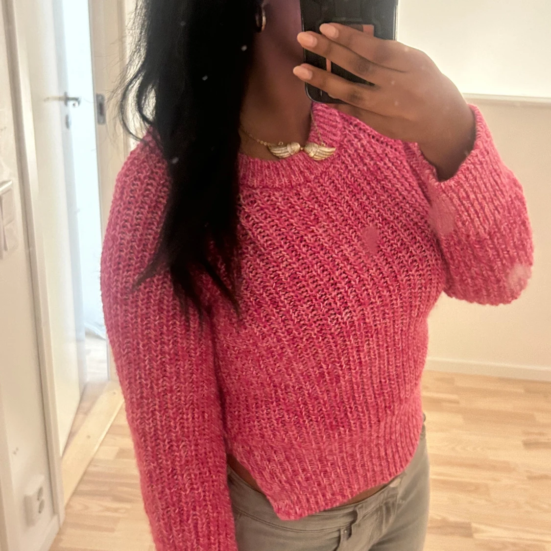 En stickad tröja från Arket. Super fin och en väldigt fin rosa färg och passar perfekt nu till sommaren. Väldigt bra skick använt den 3 gånger. Priset går att förhandla vid snabb affär.