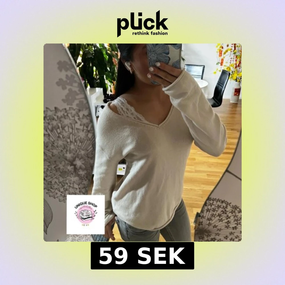 Säljer en stilren beige tröja med v-ringning. Tröjan har långa ärmar och en avslappnad passform, perfekt för en casual look. Den är enkel att matcha med olika outfits och ger en mjuk och bekväm känsla.