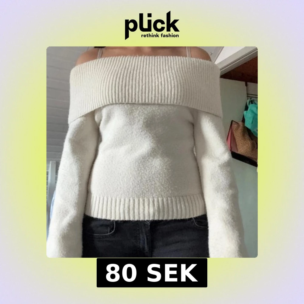 Offshoulder vit stickad tröja