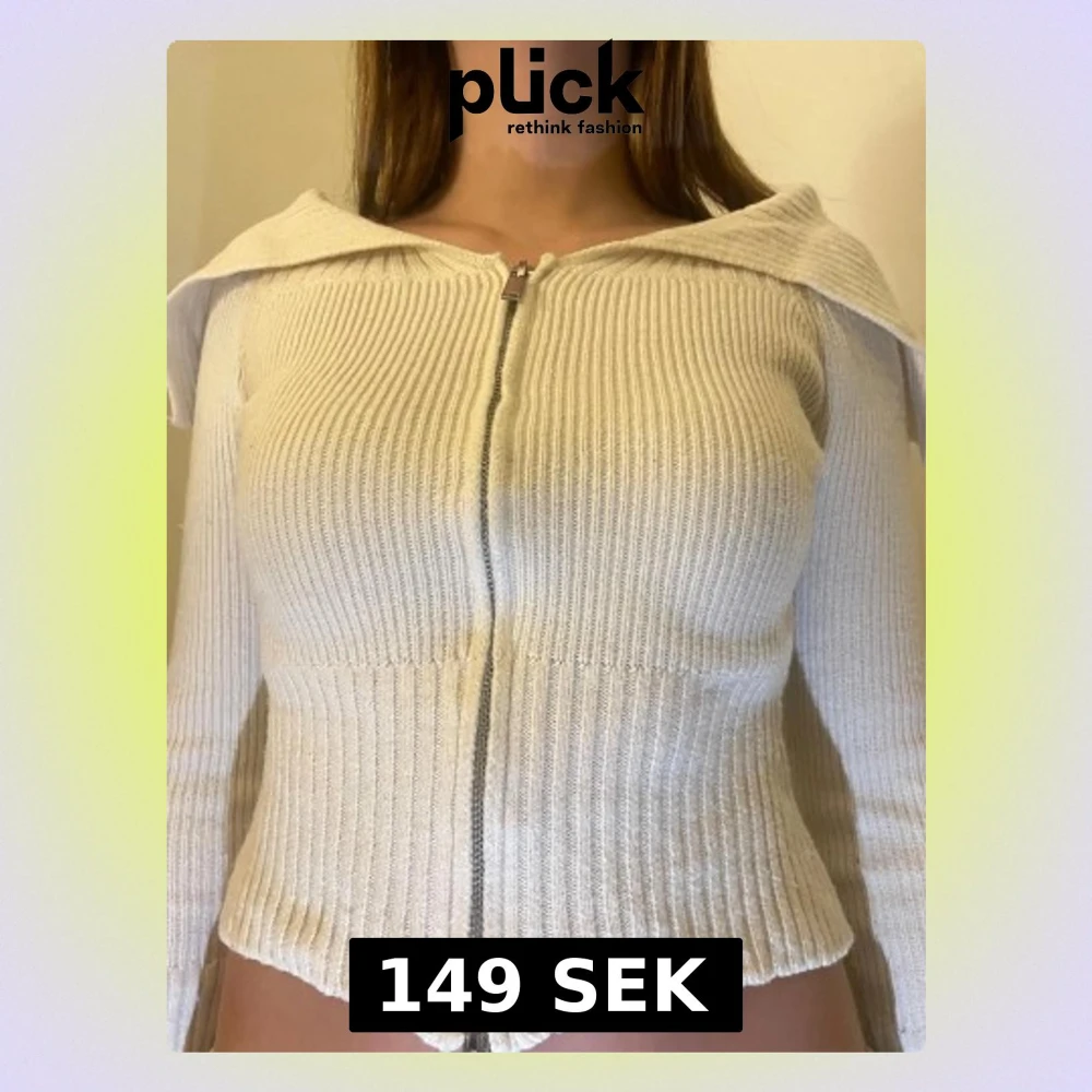 Säljer en beige ribbad kofta med lång ärm och dragkedja framtill. Tröjan är stickad och har en snygg krage. Köpte från Gina tricot