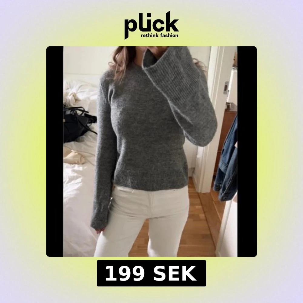 Mysig grå stickad tröja med rund hals och långa, något utsvängda ärmar. Tröjan har en enkel och stilren design som är lätt att matcha med olika outfits. Perfekt för kyliga dagar och passar dig som gillar en klassisk look.