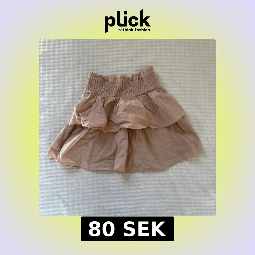 Supersöt beige kortkjol från SHEIN i storlek XS. Kjolen har bred smock i midjan och dubbla volanger som ger en flowy och luftig känsla. Perfekt för varma dagar och enkel att styla med crop tops eller stickade tröjor.